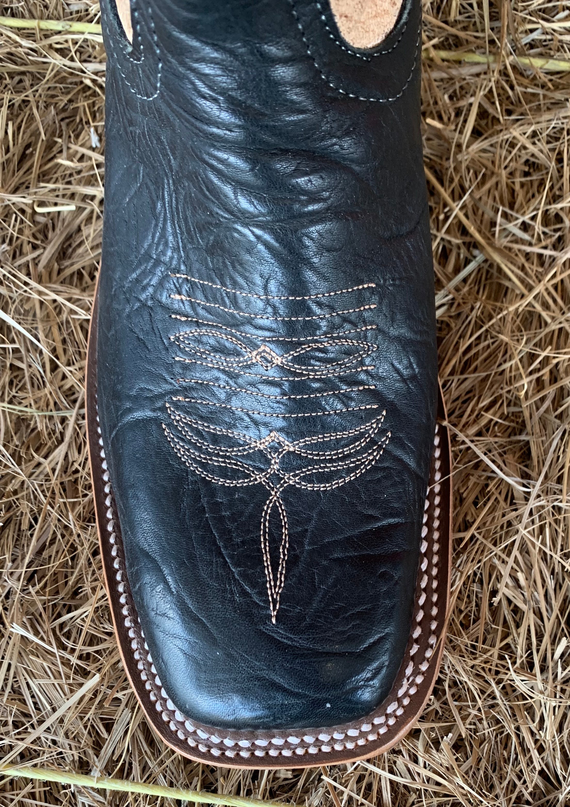 Black Oiled Shoulder Square Toe Boot with Ivory Mad Dog Top.